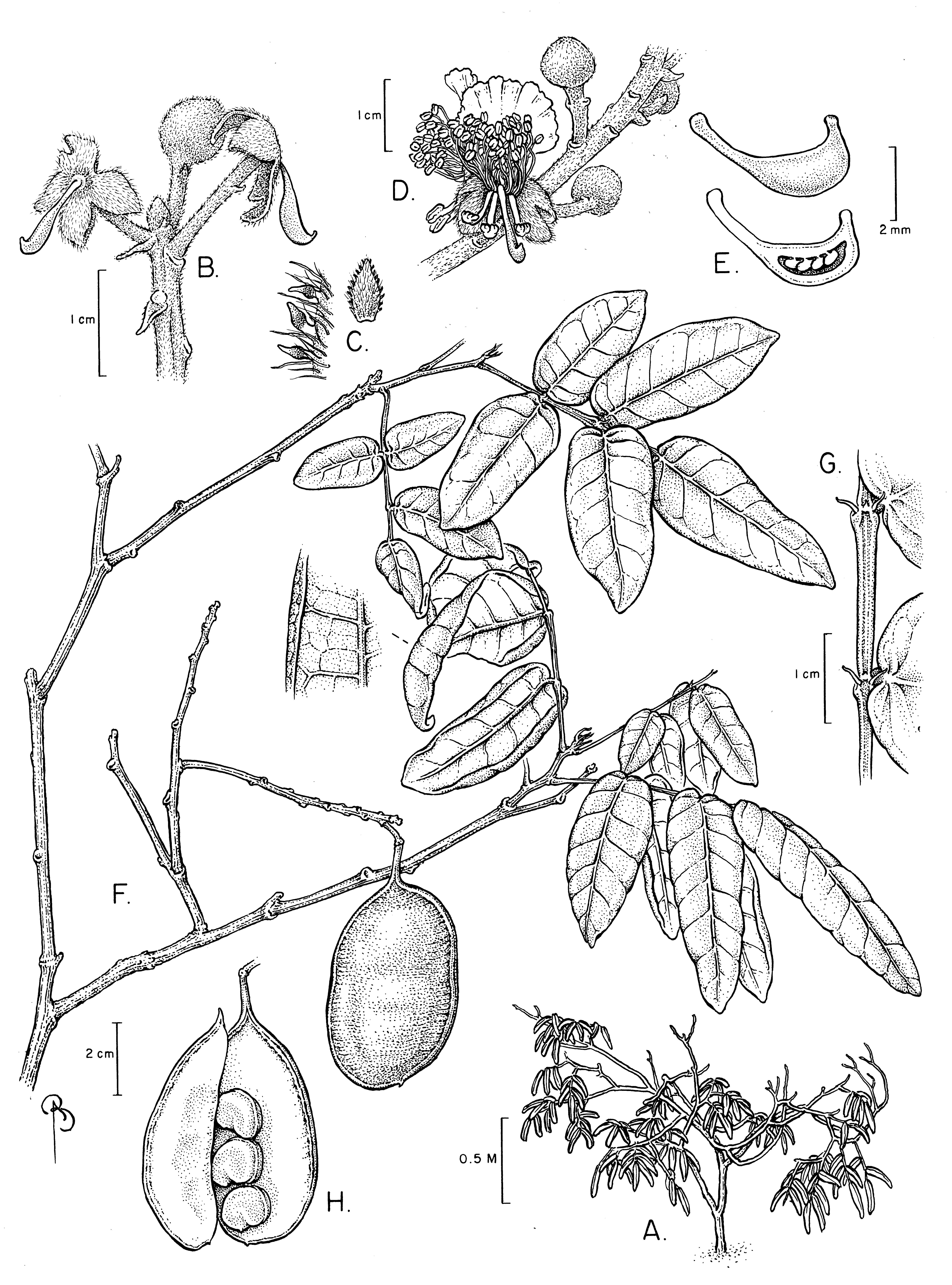 During her career, Bobbi has focussed on illustrating plants for scholarly texts, aimed at clarifying the identification and description of plants. Her illustrations are based on herbarium material, pickled flowers, photographs or drawn in the field. Her illustrations are exceptionally detailed, and often include magnified details of the plants. She has amassed an immense portfolio, having completed thousands of illustrations for various publications and geographical regions. Many of her illustrations are published in monographs and articles of new species, and have more recently focused on Anacardiaceae, Melastomataceae, Myrtaceae and Myristicaceae. She has worked on several floras, including Flowering Plants of the Neotropics, Guide to the Vascular Plants of Central French Guiana (2 volumes), Orchid Flora of the Greater Antilles, Vines and Climbing Plants of Puerto Rico and Intermountain Flora (9 volumes). Some of her most well-known work on legumes were the illustrations she made for Rupert Barneby, including the Fabales volume of the Intermountain Flora and many new species in Silk Tree, Guanacaste, Monkey’s Earring (2 volumes 1996, 1997) and Sensitivae Censitae Mimosa (1991).