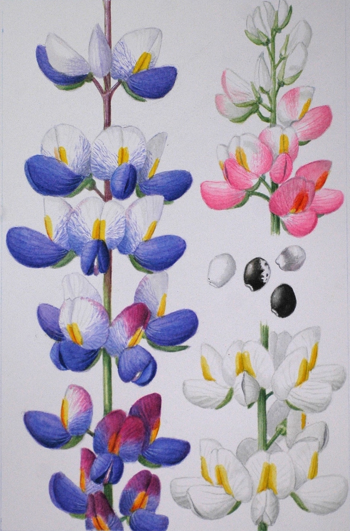 Lupinus mutabilis, the Andean crop lupin, illustrating the mutability of flower color. Copyright: Rosemary Wise. Published in 2018 in Curtis’s Botanical Magazine 35 (2): pp. 134–148.
