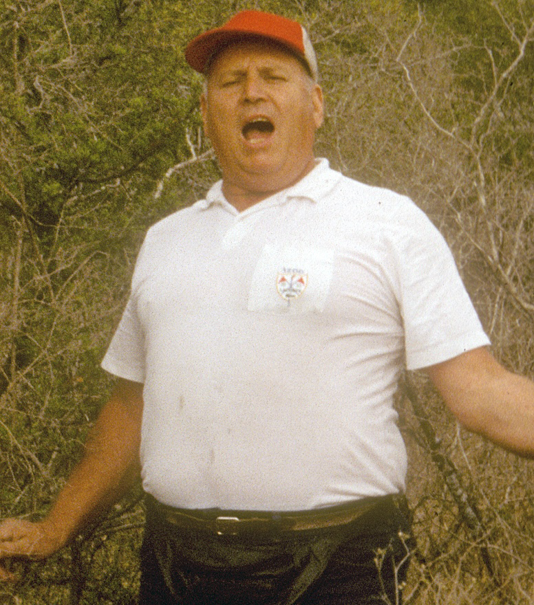 John Ebinger, bursts into song in a pasture full of Vachellia farnesiana in Mexico. Photo: Dave Seigler.
