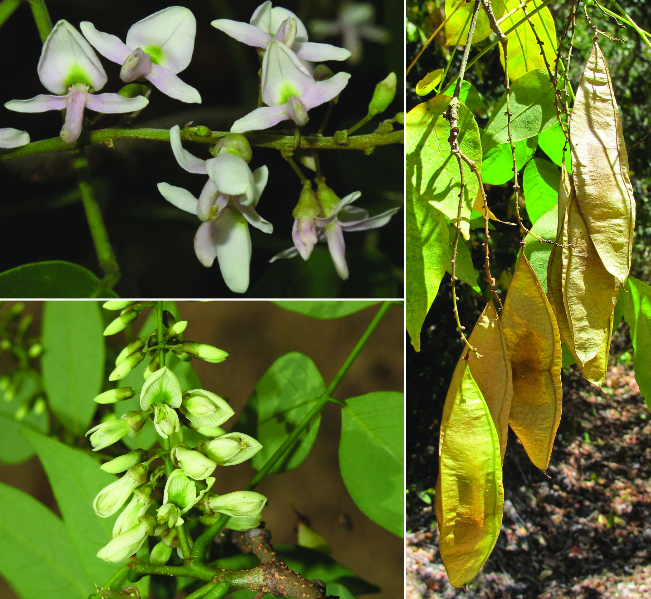 Flowers and foliage of Alexa duckeana; photos by Guilherme Silva.