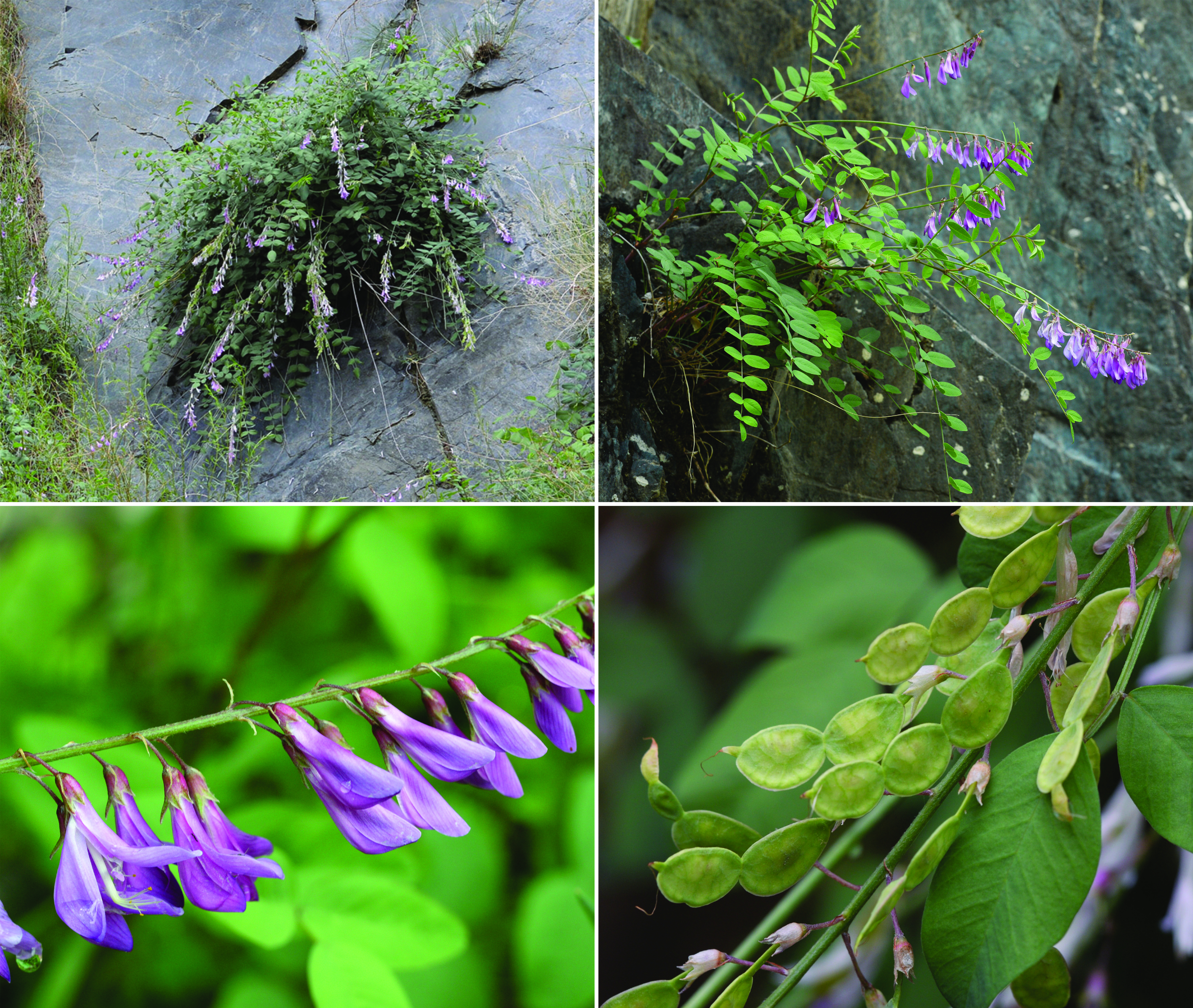 There are more than 160 species of Hedysarum across north temperate Asia, Europe, northern Africa, and North America. The Qinghai-Tibetan Plateau is one of the centers of diversity for the genus, with 24 species, 22 of which are endemic there. The newly described Hedysarum qilianshanense is narrowly endemic to a remote valley in the magnificent Qilianshan Mountains on the northern border of the Qinghai-Tibetan Plateau. It grows on stony slopes and rock cliffs at elevations of 2000–3000 m.